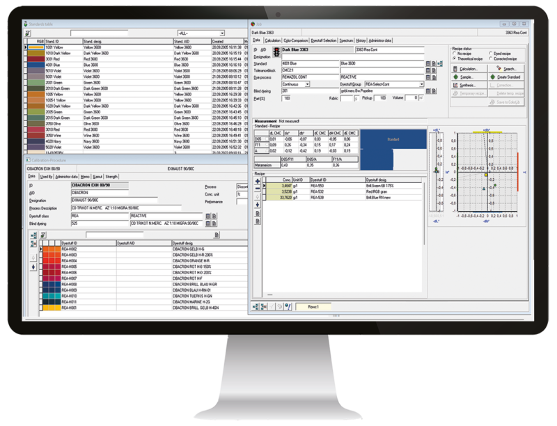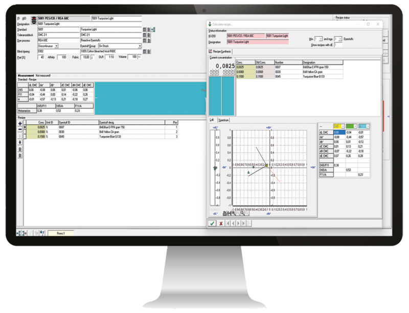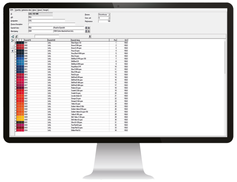 - Quality improvement by optimized recipes with good dyeing behavior, quick and objective PASS/FAIL decisions, optimized dyeing process