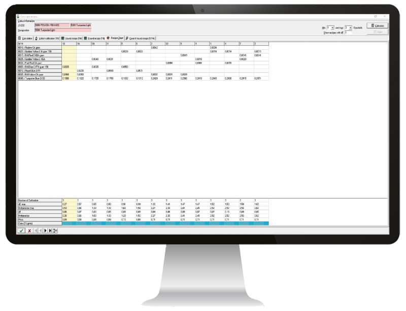 - Selection of calculated recipe according to criteria, e. g. color difference, metameric, price